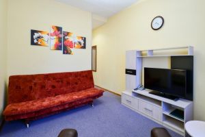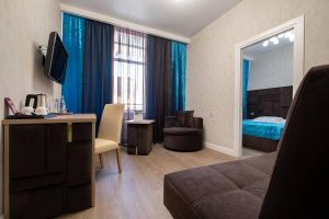 Двухкомнатный номер с балконом. Подходит для комфортного размещения до четырех гостей. Номер располагает двуспальной кроватью (160см), для дополнительных мест предусмотрен раскладной диван.