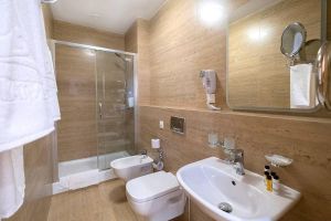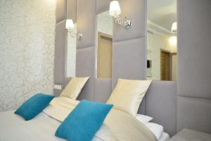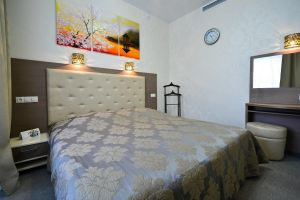 Площадь номера позволяет разместить двух гостей на двуспальной кровати с ортопедическим матрасом (180 см), предусмотрено дополнительное место.