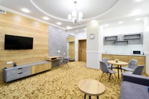 Однокомнатный просторный номер с большой лоджией. Подходит для комфортного проживания двух гостей, с возможностью размещения до четырех человек (кресло-кровать).