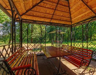 - Веранда с видом на лес, летняя мебель мебель из ротанга