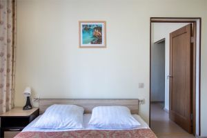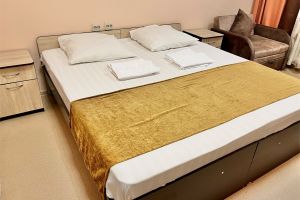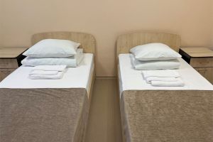 Количество комнат 2-комнатныйСветлый, просторный и уютный двухкомнатный номер. В номере стильный интерьер. Номер разделен на спальную зону с одной большой кроватью и зону отдыха. Вид: живописная лесопарковая зона. Оборудован всем необходимым для проживания: ТВ, холодильник,сан.узел, ванная комната. В корпусе имеется лифт, теплый переход в лечебный корпус. ВАЖНАЯ ИНФОРМАЦИЯ ДЛЯ ПРИБЫВАЮЩИХ ГОСТЕЙ, ПАМЯТКА В САНАТОРИЙ ДЛЯ ПАЦИЕНТОВ По прибытию в Санаторий для заселения необходимо иметь пакет документов:санаторно-курортную карту с пройдённым медицинским обследованием по месту жительства с заключением врача о допуске к лечению в санаторно-курортном учреждении соответствующего профиля; справку об эпидокружении, которая выдается в поликлинике по месту жительства, о том, что пациент не был в контакте с инфекционными больными в течение 14 дней. Справка действительна 3 дня (не считая дороги); для граждан РФ – внутренний паспорт; детям: свидетельство о рождении.Количество комнат 2-комнатныйСовременный, просторный, светлый номер. В номере стильный интерьер. Окно этого номера, выходят на тихий, милый дворик. -Площадью 70 м² состоит из прихожей, гостиной и спальной комнаты. -В номере имеется все необходимое, что может гарантировать только лучший отдых. -Большой номер с индивидуальной сауной. -Это даст полноценно отдохнуть после насыщенного дня . В гостиной комнате есть кухонной уголок. -Поэтому если вы привыкли получать от жизни все, обратите внимание на люкс номера. ВАЖНАЯ ИНФОРМАЦИЯ ДЛЯ ПРИБЫВАЮЩИХ ГОСТЕЙ, ПАМЯТКА В САНАТОРИЙ ДЛЯ ПАЦИЕНТОВ По прибытию в Санаторий для заселения необходимо иметь пакет документов:санаторно-курортную карту с пройдённым медицинским обследованием по месту жительства с заключением врача о допуске к лечению в санаторно-курортном учреждении соответствующего профиля; справку об эпидокружении, которая выдается в поликлинике по месту жительства, о том, что пациент не был в контакте с инфекционными больными в течение 14 дней. Справка действительна 3 дня (не считая дороги); для граждан РФ – внутренний паспорт; детям: свидетельство о рождении.Количество комнат 1-комнатныйОднокомнатный одноместный номер с удивительным видом на лес. Оборудован всем необходимым для комфортного проживания: кровать, телевизор, шкаф, холодильник, тумбочка, сан. узел, душ, балкон. площадь - 14 кв.м. 1-5-й этажи. В корпусе имеется лифт, теплый переход в лечебный корпус.ВАЖНАЯ ИНФОРМАЦИЯ ДЛЯ ПРИБЫВАЮЩИХ ГОСТЕЙ, ПАМЯТКА В САНАТОРИЙ ДЛЯ ПАЦИЕНТОВ По прибытию в Санаторий для заселения необходимо иметь пакет документов:санаторно-курортную карту с пройдённым медицинским обследованием по месту жительства с заключением врача о допуске к лечению в санаторно-курортном учреждении соответствующего профиля; справку об эпидокружении, которая выдается в поликлинике по месту жительства, о том, что пациент не был в контакте с инфекционными больными в течение 14 дней. Справка действительна 3 дня (не считая дороги); для граждан РФ – внутренний паспорт; детям: свидетельство о рождении.Количество комнат 1-комнатныйКомфортабельный однокомнатный номер для 2-х человек с двумя отдельными односпальными кроватями. Номер с балконом. В комнате: две 1,5 спальные кровати,2 прикроватные тумбочки, шкаф д/одежды, телевизор, холодильник, сан.узел, душ. В корпусе имеется лифт, 