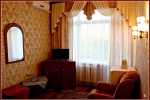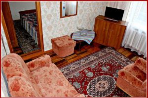 - Санузел с ванной, кондиционер чайник, посуда, ТВ.