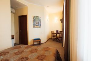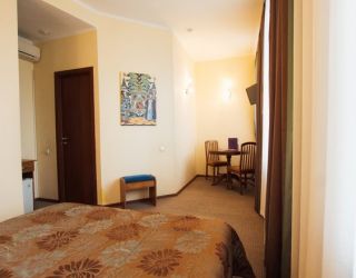 Количество комнат 1-комнатныйТип номера ЛюксДополнительное место еврораскладушкаКол-во доп. мест 1 Кол-во основных мест 2 Площадь (кв. м) 43 Мебель диванзеркалокровать двуспальнаянабор плетеной мебелиприкроватные тумбочкистолик кофейныйшкаф-купеОборудование кондиционермини-холодильниктелевизор ЖКтелефончайный набор посудыСанузел бидес ваннойтапочкитуалетные принадлежностифенхалатСервис Wi-Fi бесплатносмена полотенецсмена постельного бельяуборка номера - Количество комнат 1-комнатный