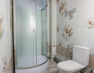 Одна совмещенная ванная комната: душевая кабина, раковина и санузел или две раздельные ванные комнаты: 1) душевая, санузел, раковина; 2) душевая, раковина