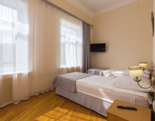 Удобства: Зеркало, Телевизор ж/к, Две односпальные кровати, Санузел с душем, Утюг, Гладильная доска, Платяной шкаф, Столовая посуда, Фен, Балкон, Холодильник, Электрочайник, Прикроватные тумбочки, Стол, Раковина