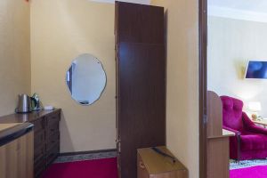 Удобства: Зеркало, Прикроватные лампы, Часы-будильник, Кондиционер, Тумбочка для обуви, Комод, Телевизор ж/к, Картины, Раковина, Санузел с ванной, Утюг, Шкаф для посуды, Набор мягкой мебели, Стол, Прикроватные тумбочки, Электрочайник, Холодильник, Столовая посуда, Платяной шкаф, Двуспальная ...