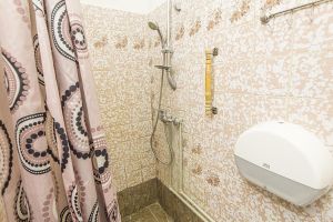 Удобства: Зеркало, Кресло, Раковина, Картины, Телевизор ж/к, Санузел с душем, Прикроватная тумбочка, Шкаф для посуды, Односпальная кровать, Платяной шкаф, Столовая посуда, Балкон, Холодильник, Электрочайник, Стол, Вентилятор