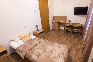 Удобства: Зеркало, Кресло, Раковина, Картины, Телевизор ж/к, Часы-будильник, Санузел с душем, Прикроватная тумбочка, Утюг, Шкаф для посуды, Гладильная доска, Односпальная кровать, Платяной шкаф, Столовая посуда, Балкон, Холодильник, Электрочайник,Стол, Вентилятор