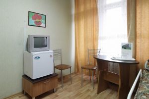 Однокомнатный номер может вместить до 3-х гостей с двумя односпальными кроватями и удобствами