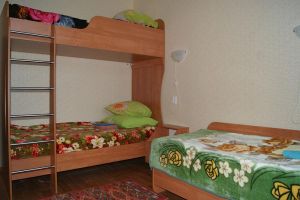 - Кровать – 90*200. Кровать двухъярусная – 2 места 900*200. Подушки 70*70, матрасы пенополиуритановые, кпб – бязь.