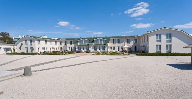 Оснащён всем необходимым для проживания: санузлом с душем и туалетом, мебелью, предметами гигиены, посудой и бытовой техникой. В большинстве номеров есть балкон с видом на море или на парковую зону.