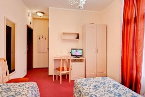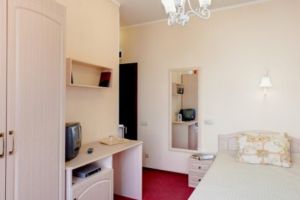 Одноместный комфорт — уютный и светлый номер для комфортного размещения одного гостя. Дизайн выполнен в приятной пастельной гамме, окна выходят на парковую зону. Большая часть номеров оснащена балконом. В каждом номере выполнен современный ремонт, установлена новая мебель и сантехника. Номер состоит из комнаты и санузла; общая площадь – до 17 кв.м.