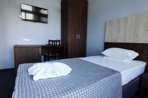 Принадлежности гигиены: одно банное полотенце, одно среднее полотенце, жидкое мыло.Двухместный номер с видом на море или парк.