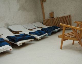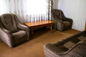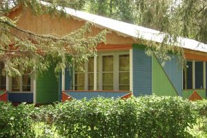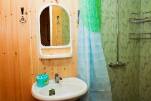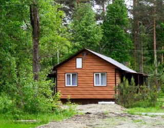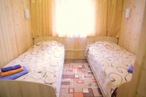 В домике имеются три кровати, шкаф, стол, стулья. Общий душ и с/у на территории дома отдыха