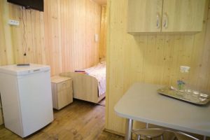 - Кухня: холодильник, электрический чайник, набор посуды