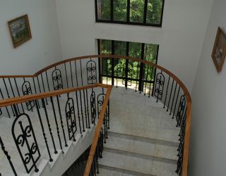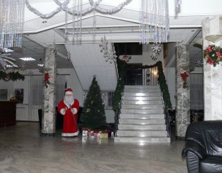 На первом этаже: холл, ресепшен, видеозал, конференц-зал, бильярд, витрина с сувенирной продукцией.
