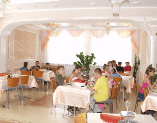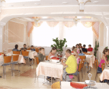 Немаловажная роль в процессе оздоровления пациентов отводится их питанию, которое организовано в уютной и красивой столовой за 4-местными столами. Ассортимент блюд отличается разнообразием, в меню включаются свежие фрукты, овощи, натуральные соки. Отдыхающим предлагается основной вариант стандартной диеты.
