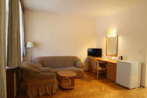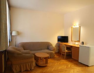 Номер оборудован: Две кровати, спутниковым телевидением, кондиционером, холодильником, душем.