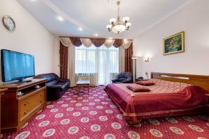 Состоит из одной комнаты с большой двуспальной или двумя полуторными кроватями с зоной отдыха c мягким креслом, диваном, журнальным столиком, а также ванной комнаты с душевой кабиной или ванной.