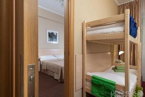Номер рассчитан на комфортное размещение семьи с детьми или компании до 4 человек. Есть возможность поставить еще одно приносное дополнительное спальное место.