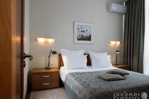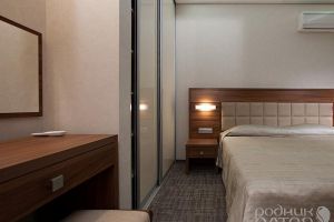 Двухместный номер с 1 двуспальной кроватью 160 (180)*200 и креслом-кроватью, и балконом. В некоторых номерах кровать - трансформер - может быть разделена на две одноместные кровати 90*200 см. О наличии таких номеров уточняйте в отделе продаж.