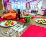 Трехразовое питание в столовой санатория организовано по системе «шведский стол». Просторный светлый зал санатория с видом на море одновременно вмещает 120 человек. Меню составляется ежедневно, поэтому каждый день вам предложат попробовать что-то новое. Согласно назначению врача возможно применение диеты.