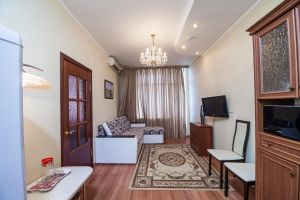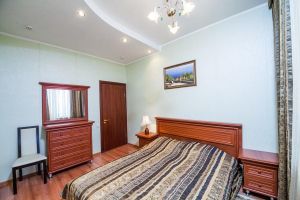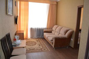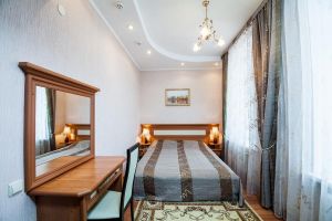 Номер предназначен для комфортного размещения одного гостя (двух гостей). Номер имеет одну широкую кровать, холодильник, телевизор, шкаф, журнальный столик, стулья. В номере имеется санузел, прихожая и балкон. Для гостей, проживающих в номере, предусмотрено питание в диетической столовой по принципу меню-заказ.