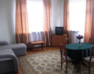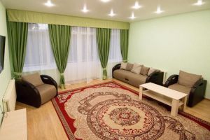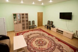 В номере: прихожая с вешалкой и/или шкафом для одежды, санузел с душем (ванной), 2 комнаты; в спальной комнате - две 1,5 спальные кровати или одна 2 спальная кровать, две тумбочки, шкаф для одежды, стул, в гостиной - набор мягкой мебели, столик журнальный, телевизор, шкаф для одежды, шкаф для посуды и индивидуальных принадлежностей. Холодильник расположен в гостиной.