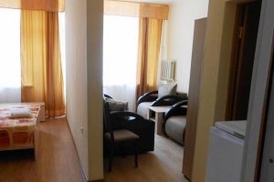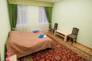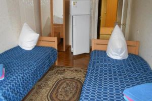 В номере: прихожая c вешалкой для одежды, комната (15 м²): две 1,5 спальные кровати или одна двуспальная кровать, две тумбочки, два стула, кресло, стол, телевизор, шкаф для одежды. Холодильник расположен в комнате.