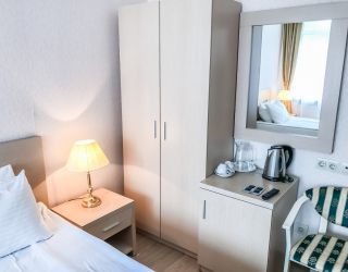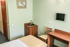 Стандарт одноместный (2 корпус). Небольшой по площади номер. Состоит из прихожей, спальни, с/у. В номере ТВ, холодильник, кондиционер, Wi-Fi. Имеется балкон.