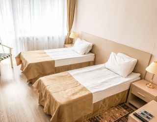 Небольшой уютный номер с двумя раздельными кроватями и балконом. Номера данной категории находятся на втором этаже первого корпуса санатория. Дополнительное место не предоставляется. Идеальный вариант для недорого проживания вдвоем.