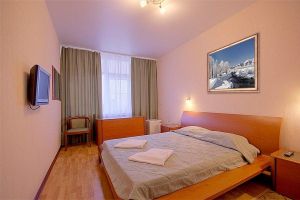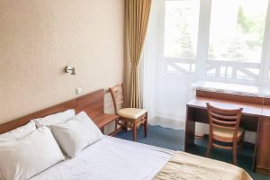 Небольшой уютный номер с двуспальной кроватью и балконом. Номера данной категории находятся на втором этаже первого корпуса санатория. Дополнительное место не предоставляется. Идеальный вариант для недорого проживания вдвоем или одному.