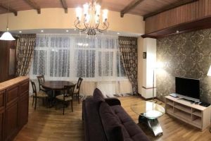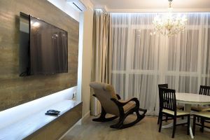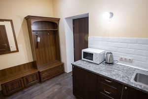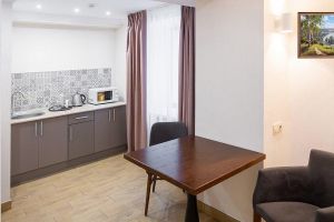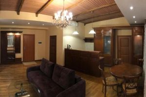 Номер оформлен в классическом стиле по индивидуальному дизайн-проекту. Имеет две просторные комнаты, кухню, санузел с душевой, большой коридор. В ремонте использовались экологически чистые материалы. Вся плитка в нежилых комнатах с электроподогревом. Комнаты оснащены кондиционерами, ЖК телевизорами с хорошим разрешением и трансляцией НD каналов. Гостиная имеется большое панорамное остекление. Все комнаты с потрясающим видом из окна.