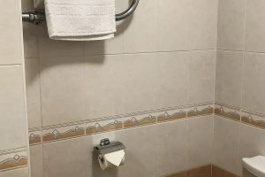 Небольшой по площади номер полулюкс (2015 год), состоит из прихожей, спальни, санузел с душевой кабиной. Имеется застекленный балкон. Подходит для одноместного и двухместного размещения. Вид из номера на монастырь и территорию.