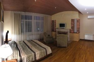 Большой по площади номер (одна комната), состоит из прихожей, спальни, ванной с душевой кабиной. Площадь - 27 кв.м. В номере: ТВ, холодильник, кондиционер, чайник электрический, набор посуды. Предоставляется 2 доп. места (раскладной диван).