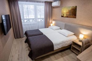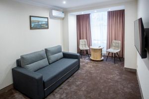 Удобный 2-комнатный номер, состоит из прихожей, спальни, гостиной,санузел с душевой кабиной. Идеальный вариант для семейного отдыха из 3-4 человек. В номере имеется раскладной двухместный диван, 2 балкона, 2 телевизора, 2 кондиционера, мини-кухня (чайник, микроволновая печь). Для детей до 3-х лет возможно предоставление детской кроватки.