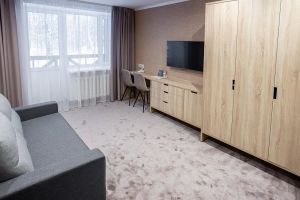 Большой по площади номер (одна комната), состоит из прихожей, спальни, ванной с душевой кабиной. В номере: ТВ, холодильник, кондиционер, чайник электрический, набор посуды. Предоставляется 2 доп. места (раскладной диван).
