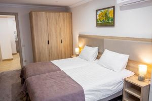 Удобный 2-комнатный 2-х местный номер, состоит из прихожей, спальни, гостиной, с/у, в некоторых номерах имеются балконы. Предоставляется 2 доп. места (раскладной диван).