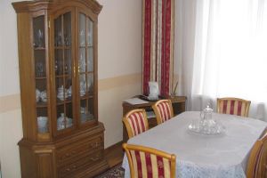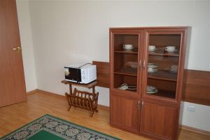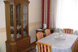 - В столовой обеденный стол, буфет со столовым и чайным сервизами, хрусталь, холодильник, электрический чайник, печь СВЧ;