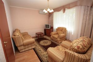 - в двухкомнатных двухместных номерах расположена гостиная с мягкой мебелью;