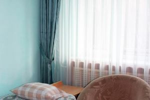 В номере –кресло, полутороспальная кровать с прикроватной тумбочкой и светильником.