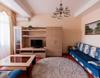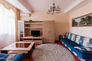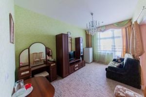 Холодильник, телевизор, картина, телефон, утюг, гладильная доска, фен, тумба под телевизор, тумба прикроватная, чайник, стол туалетный с зеркалом, кресло, стол журнальный, 2 стула мягких, банкетка, стол-сушилка для белья, 2-х спальная кровать, диван раскладной, шкаф-купе с зеркалом, душ, халаты, тапочки, одноразовая продукция для ванной комнаты, чайная пара 4 шт, столовый набор 4 шт., тарелки 4 шт., лоджия/балкон, графин, два стакана, блюдо круглое, освежитель воздуха, диспенсер для косметических салфеток, диспенсер для индивидуального покрытия унитаза, комплект полотенец (3 шт.), простынь.