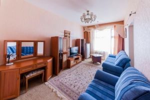 Холодильник, телевизор, картина, телефон, утюг, гладильная доска, фен, тумба под телевизор, тумба прикроватная, чайник, стол туалетный с зеркалом, кресло, стол журнальный, 2 стула мягких, банкетка, стол-сушилка для белья, 2-х спальная кровать, диван раскладной, шкаф-купе с зеркалом, душ, халаты, тапочки, одноразовая продукция для ванной комнаты, чайная пара 4 шт, столовый набор 4 шт., тарелки 4 шт., лоджия/балкон, графин, два стакана, блюдо круглое, освежитель воздуха, диспенсер для косметических салфеток, диспенсер для индивидуального покрытия унитаза, комплект полотенец (3 шт.) - 2 комплекта, простынь.