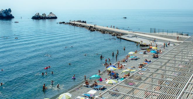 Отдельного внимания стоит закрытый лечебный пляж санатория, полностью обновленный в 2016 году. Пляж располагается в 3 уровнях, оборудован современными лежаками из искусственного ротанга и теневым тентом. Возле пляжа работает открытый подогреваемый бассейн с зоной отдыха.
