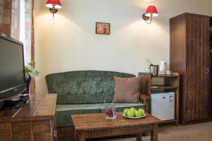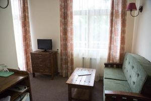 Двухкомнатный номер, который находится на первом этаже корпуса. Из окон открывается прекрасный вид на парк.