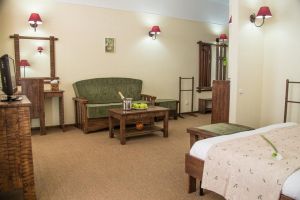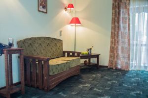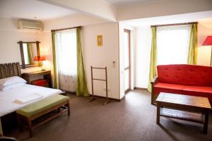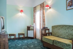 Номер с двумя отдельными комнатами – спальней и гостиной. С балкона открывается вид на парк. Тихие и просторные номера для комфортного отдыха