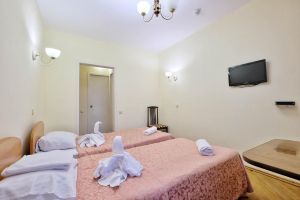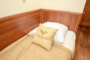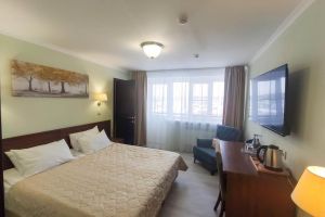 Номер состоит из уютной спальни с двумя полутораспальными кроватями; прихожей; санузла, совмещенного с душем; с выходом на балкон, кроме 5 этажа — мансардный (в летнее время — оснащен стульями для отдыха)
