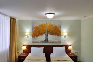 Все детали оформления прекрасно гармонируют друг с другом, создавая атмосферу уюта и комфорта. Номер состоит из уютной спальни, с двумя полутораспальными кроватями; прихожей; санузла, совмещенного с душевой кабиной; с выходом на балкон (в летнее время — оснащен стульями для отдыха).
