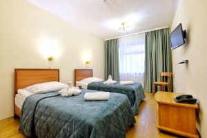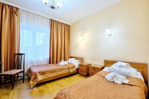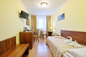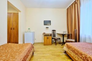 Двухместный однокомнатный номер эконом-класса, оформленный в классическом стиле. Номер состоит из уютной спальни, с двумя кроватями (80 см); прихожей; санузла, совмещенного с душем; с выходом на балкон (в летнее время — оснащен стульями для отдыха)