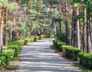 В летний зной так хочется понежиться на чистом песочке. Благоустроенный песчаный пляж санатория именно такой. К услугам отдыхающих на пляже работают летние кафе, пункт проката водного инвентаря, волейбольная площадка, открытый аквапарк, детская игровая площадка.